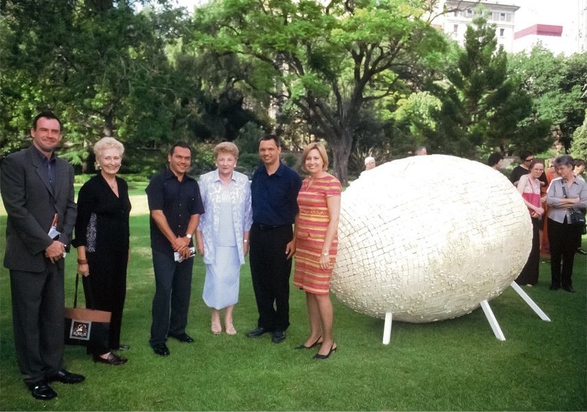 Image: Guests attend Disclosures Project 5: Darren Siwes, Born of a Lexicon 2, 2004, site specific installation, Government House, Adelaide. Samstag Museum of Art, University of South Australia Art Museum.