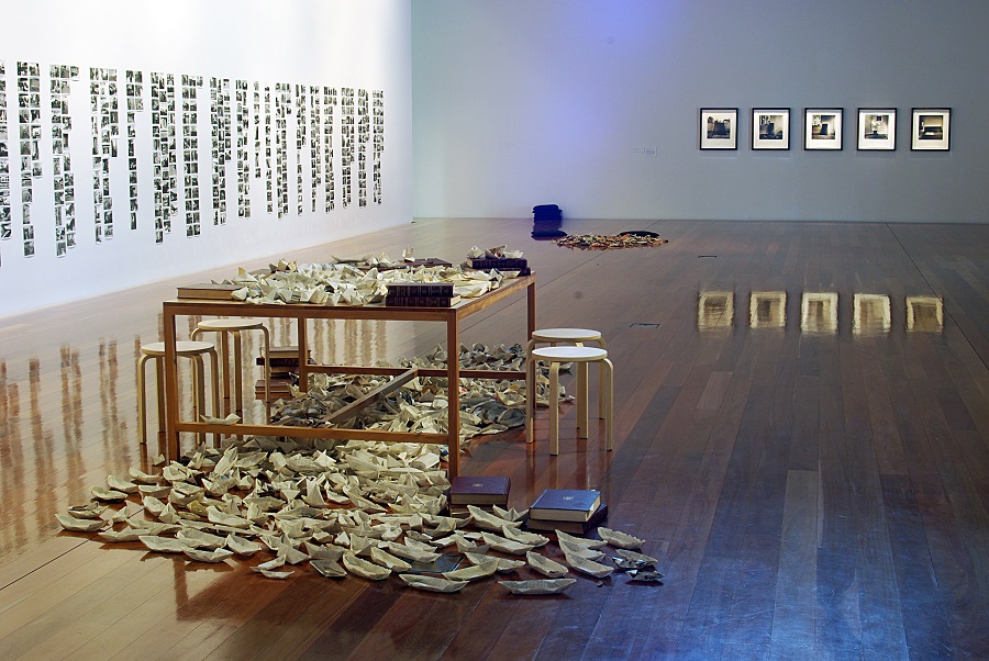 Image: Simryn Gill, Gathering, 2009, installation view, Samstag Museum of Art, University of South Australia. Photography by Mick Bradley.
