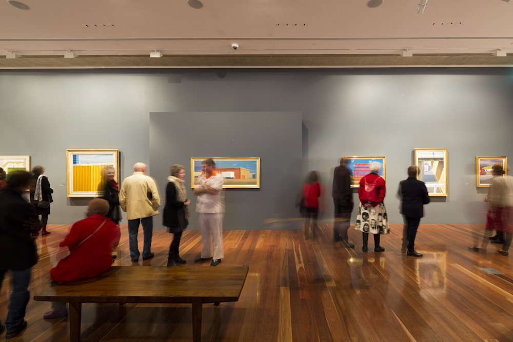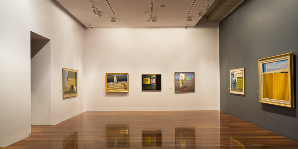 Image: Master of Stillness: Jeffrey Smart paintings 1940–2011, 2012, installation view, Samstag Museum of Art, University of South Australia. Photography by Sam Noonan.