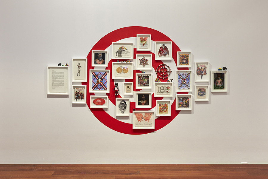 Image: Tony Albert, Once upon a time…, 2014, mixed media on paper, 200 x 300cm, installation view, Samstag Museum of Art, University of South Australia. Collection of Basil Sellers AM, Sydney. Photography by Viki Petherbridge.