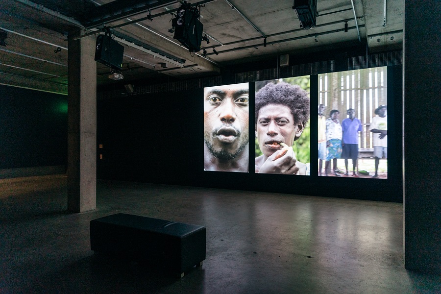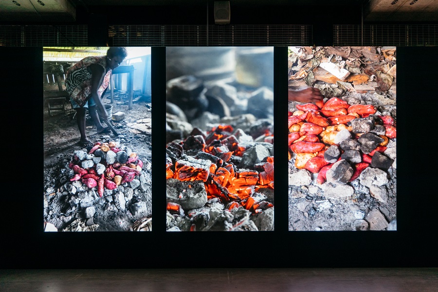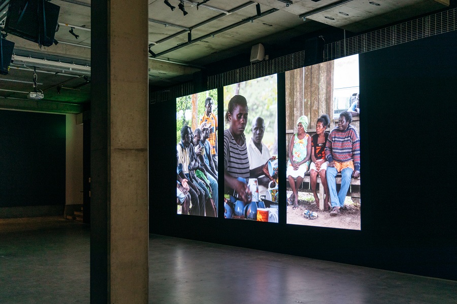 Image: Taloi HAVINI, Tsomi Wan-bel, 2017, installation view, 2021 Adelaide//International, SASA Gallery, presented by the Samstag Museum of Art, University of South Australia. Photography by Sia Duff.