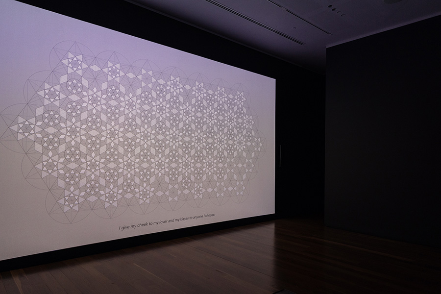 Image: Dana Awartani, Listen to my words, 2020, installation view, 2024, Samstag Museum of Art, University of South Australia. Photograph by Sia Duff. Courtesy of Samstag Museum of Art.