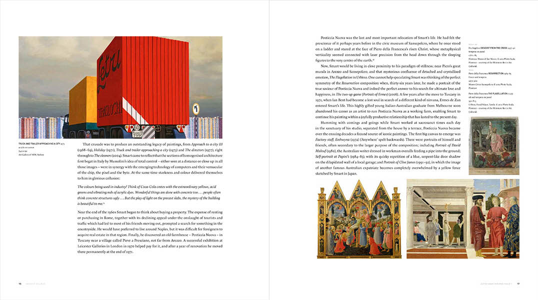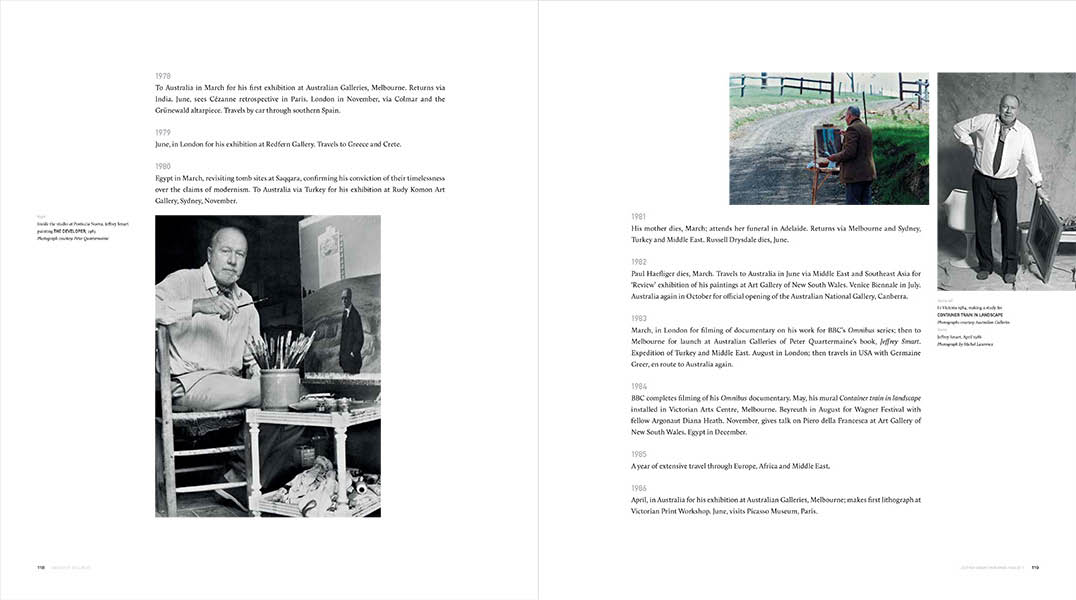 This book on the work of Jeffrey Smart is the first since his virtual retirement from painting in 2011. It illuminates the vision of the most celebrated of Australian expatriate artists, from his beginnings in Adelaide until his last major composition painted in Italy, where he has lived for the last five decades until his deat in 2013.
