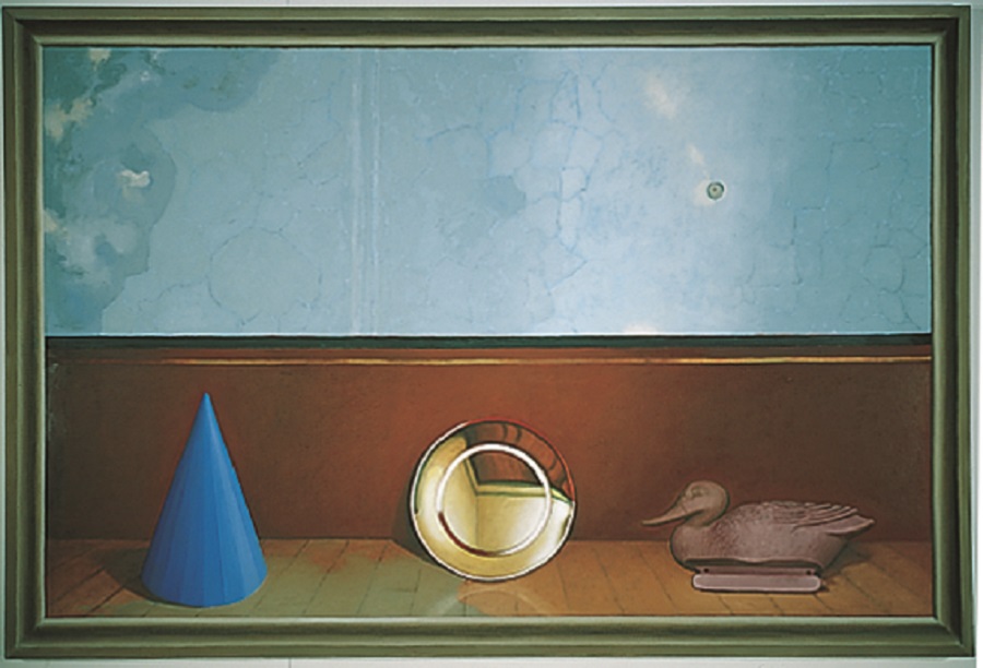 John R. Neeson's apparently orthodox representations are not entirely what they seem. Employing the mimetic strategy of trompe l'oeil, Neeson skilfully demonstrates the inexhaustible capacities of two–dimensional painting, in disciplined works of meditative power, which replicate the very sites in which they are installed.