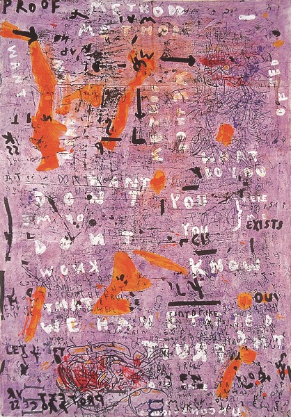 Everything, yes, everything in a Paul Hoban "paint skin" is levelled to a surface of phenomenological and semiotic observation. Think of an ancient mapping of a central nervous system, a hide that records the origins of the world. Think palimpsest and pentimento. Hoban retrieves the raspy mumblings of shaman chants, once erased by eighteenth–century analysis, now muffled by vogue desires and noisy trash.