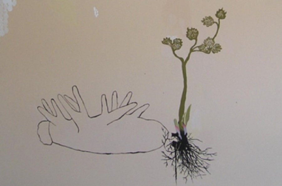 The physical reality of the painted surface is strongly emphasised by the loose, dripping brushwork. This is in distinct contrast to photographic techniques that allow viewers to overlook the process of representation and imagine that the content itself is real. She exploits the ability of the decorative in art to liberate the imagination of both artist and viewer in ways that are not possible in precise depictions. The animal/human hybrids introduce shamanistic elements, and seem to offer primitivism as an antidote to the sense of detachment that comes with experiencing the world second-hand through the mass–media. These hybrids address the contemporary condition directly, and the artist describes them as reflecting the way life in the twenty–first century unfolds against a background of image–overload. Far from turning her back on the elaborate interconnectedness created by the digital revolution, Jamison actually illustrates the model that Gilles Deleuze and Félix Guattari have proposed for it: the rhizome.