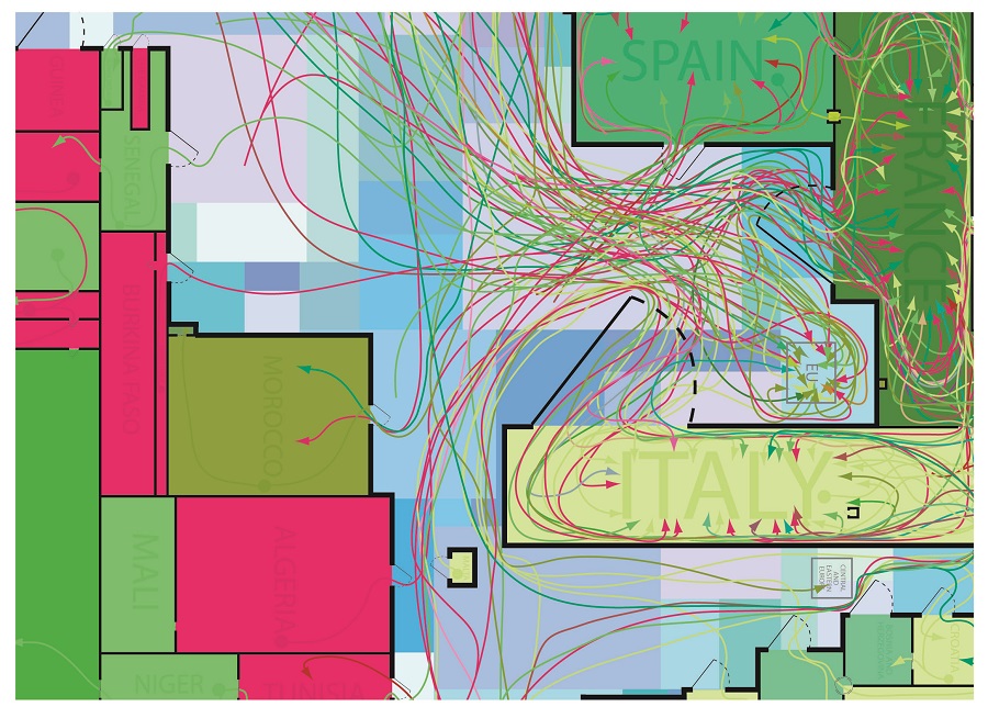 Bufardeci makes mostly digital prints (in effect maps and charts) that utilize various systems and investigate the colour–coding of visual information, statistical information.