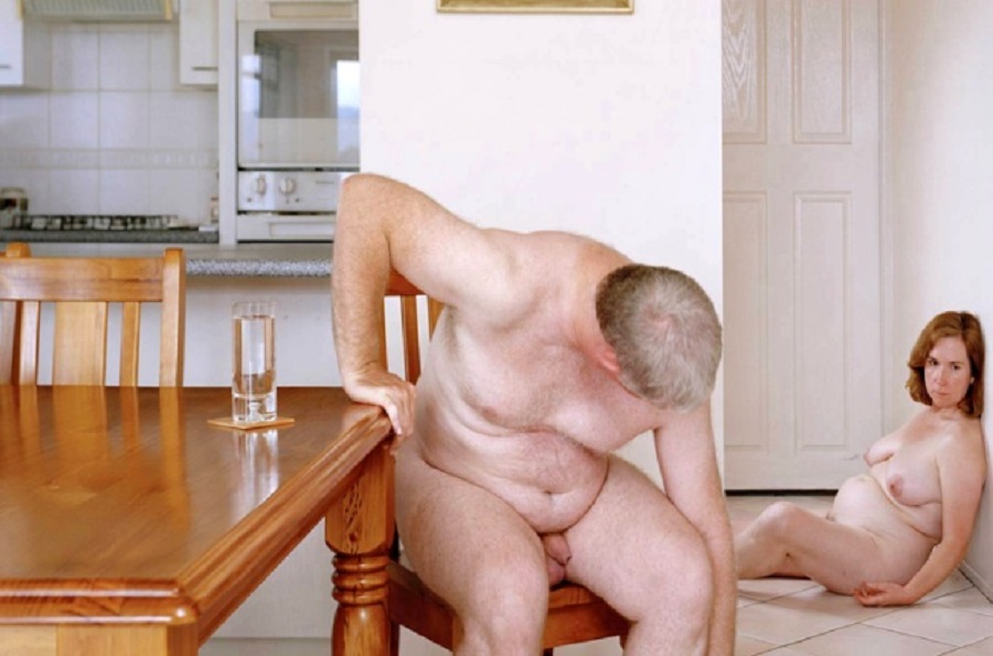 He presents scenes of slightly skewed normality with unfiltered brightness and clarity that eliminate the possibility of evocative atmosphere. The images are uncompromising and sometimes startling, but instead of harshness, their realism creates an unexpectedly poetic tenderness. As in the paintings of Lucian Freud, the voluptuousness and vulnerability of flesh becomes a subject in its own right. The situations that Knight depicts are often emotionally charged, yet give no sense of theatricality. Viewers get the strange feeling of actually being there, but we're not sure we should be.