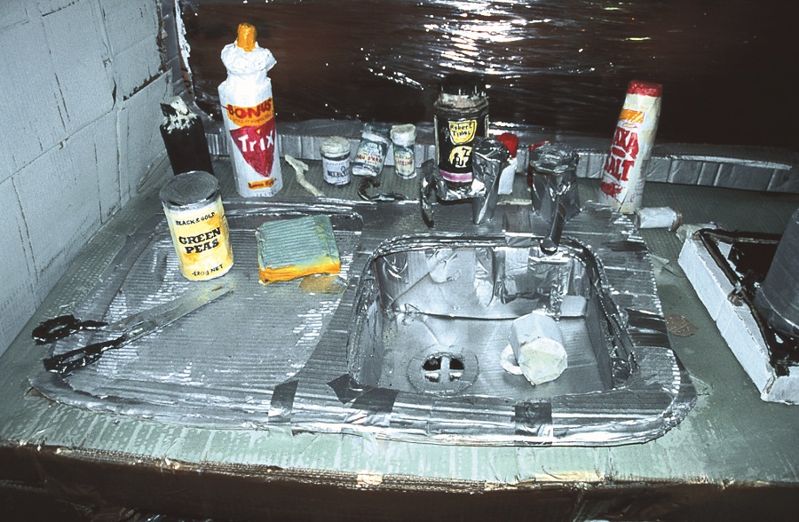 Simon Pericich is engaged with proving truth through lack of ability, by making something so ordinary it must be real. If only you could see how much I need you (2002) made in collaboration with artist Thea Costantino, is a life–size caravan fitted out with the casual objects generic to ordinary Australians on holiday. It is made completely from cardboard, held together with tape and painted to match a scuzzy reality, including shiny Mission Brown woodwork. Though ambitious in its scale and detail, the artwork is not ingenious but poignant.