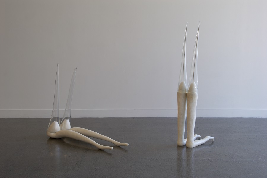 Each material is in many ways the opposite of the other, yet when they come together a third state is reached in a way that several commentators have described as “alchemical”. Male and female body parts seem to join effortlessly, both in our heads and on the floor in front of us. But it is not effortless. There is in fact much hard thinking and experimentation behind such skillful creation.
